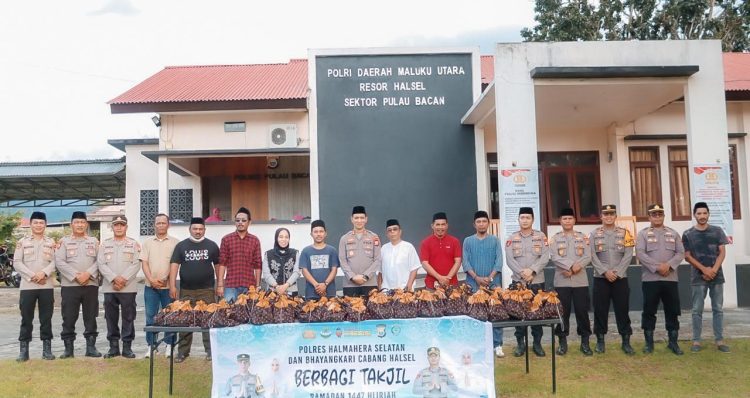 LABUHA HR — Polres Kabupaten Halmahera Selatan, menggandeng Wartawan dan Komonutas penulis (Warkop) dan Komunitas Jurnalis Halsel (KJH) gelar kegiatan Ramadan 1447 H, dengan pembagian takjil gratis kepada masyarakat, dipusatkan depan Polsek Bacan desa Mandaong kecamatan Bacan selatan. Jumat 6/3/2025. Kegiatan program berbagi ini memang rutin dilaksanakan setiap minggu selama bulan Ramadan, sehingga tak heran jika masyarakat sudah menantikan momen tersebut.
